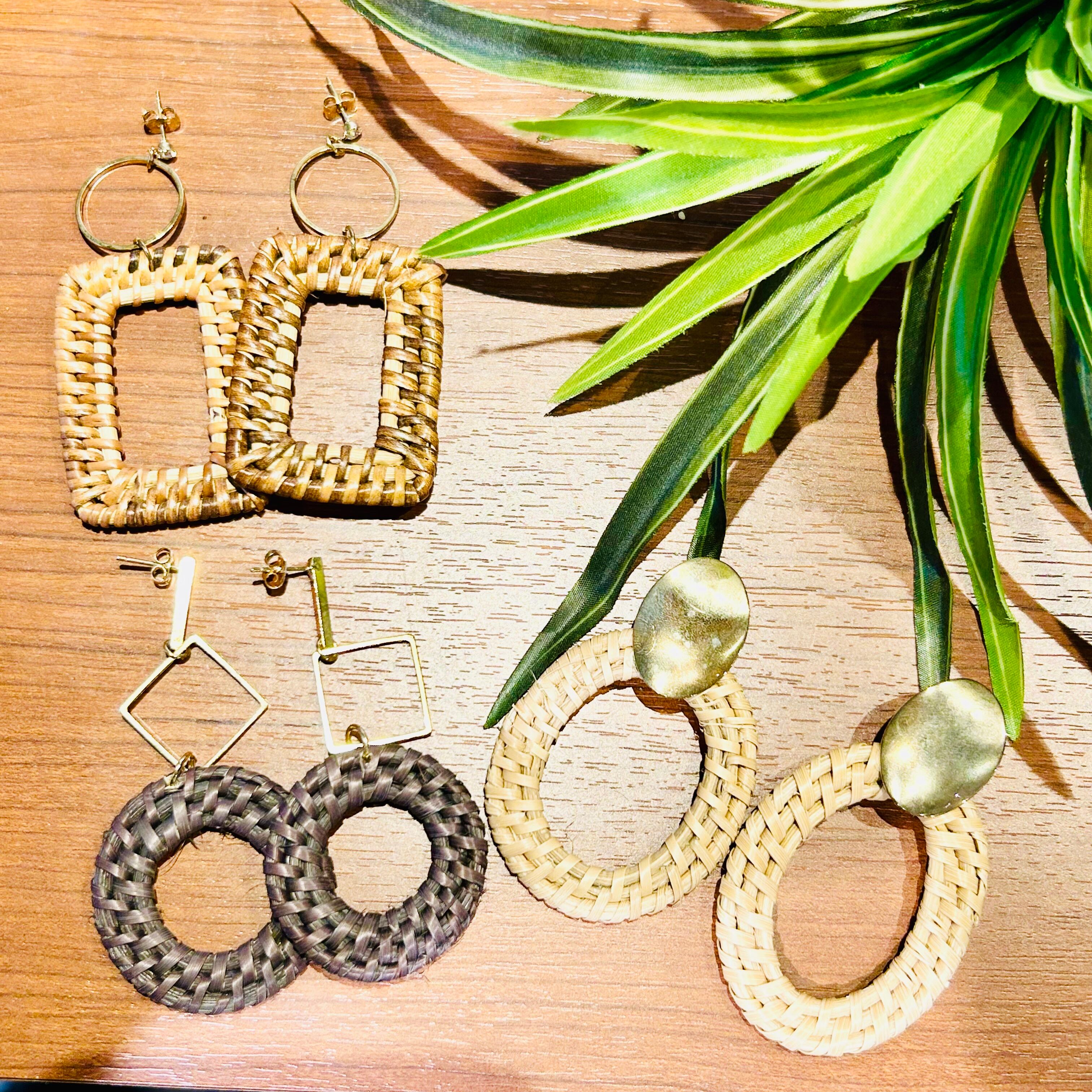 ゴールドとナチュラルなジュートの組み合わせがクールなピアス。