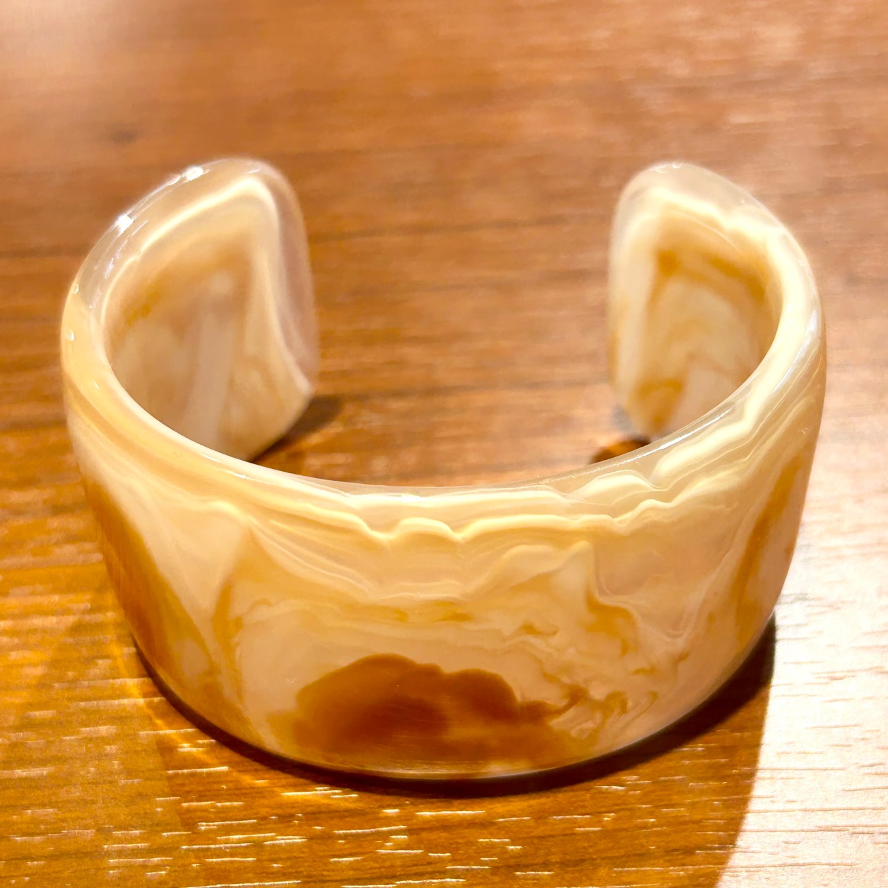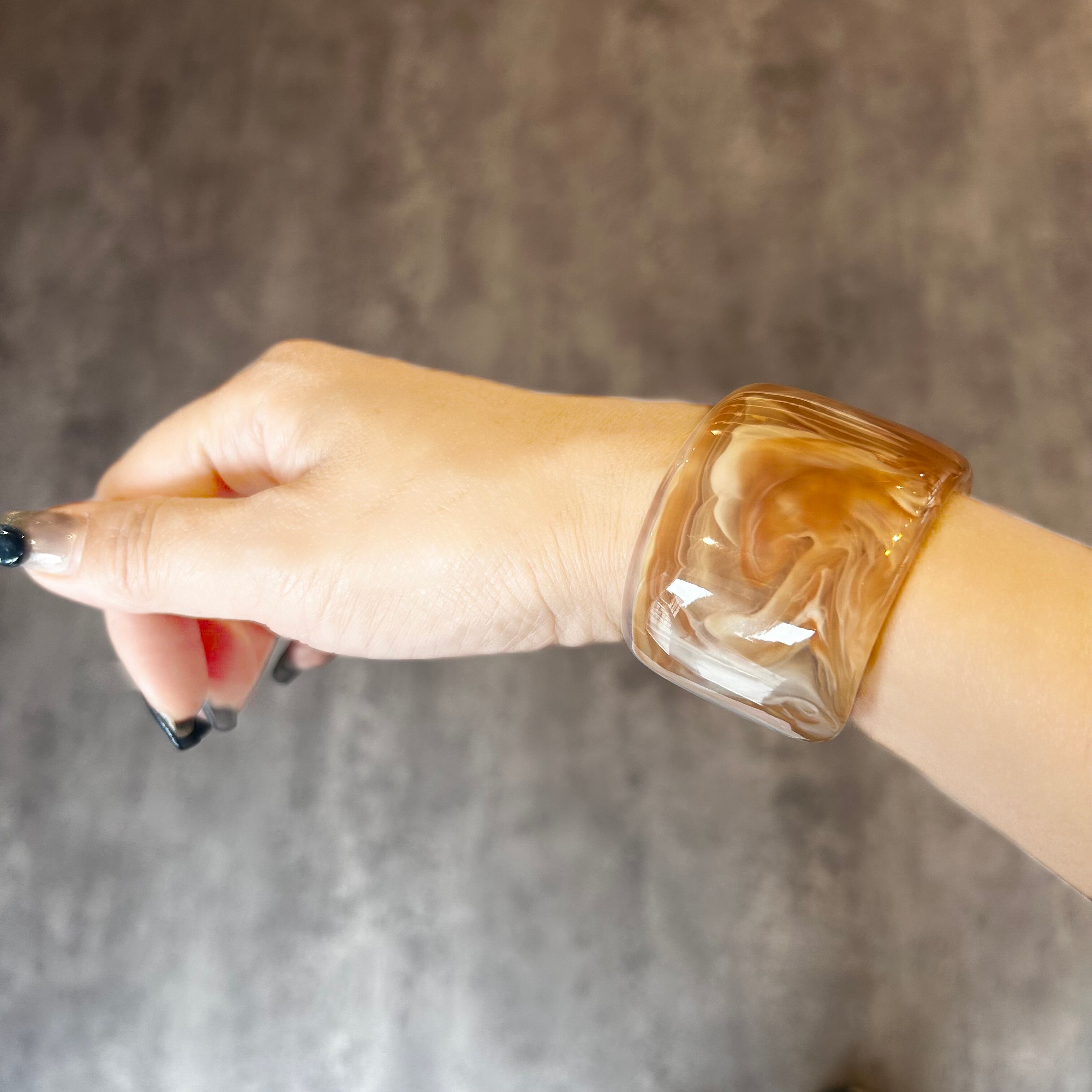 きれいなマーブル柄が目を惹くワイドバングル。