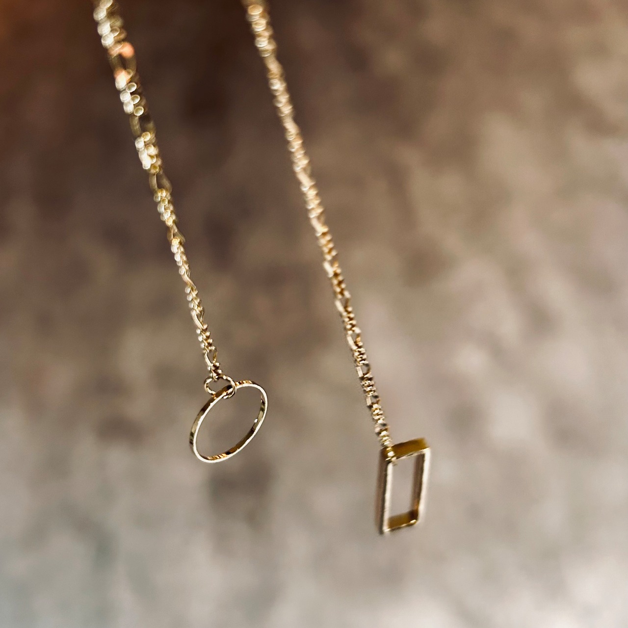 細めチェーンでコーディネートに馴染みやすくオン、オフ問わず使えるアイテム。