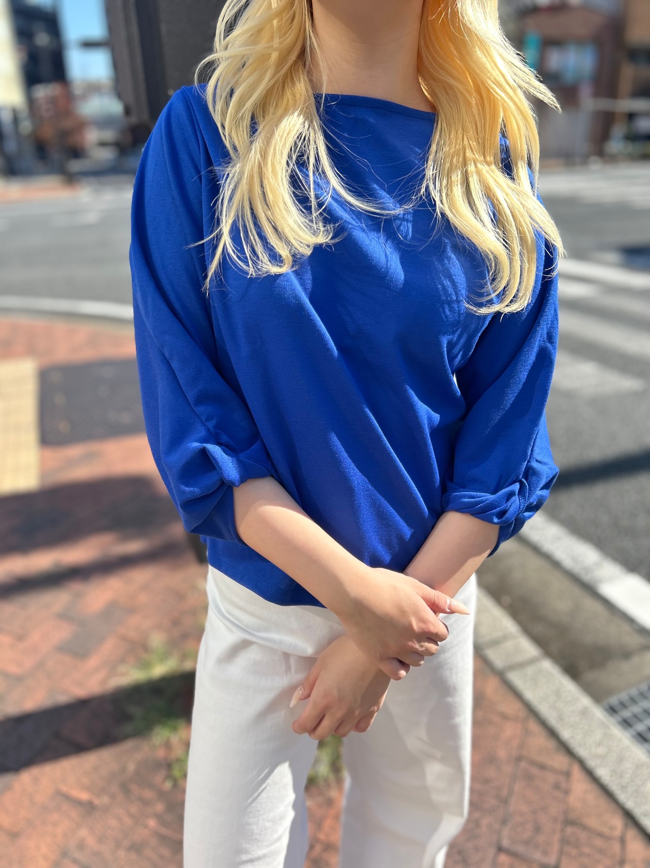 自分らしさ(スタイル)を確立した大人の女性がその日のフィーリングやTPOに合わせてgracefulをテーマに「大人のカジュアル」を提案する「NICOLE WHITE」の6分袖カットソー。