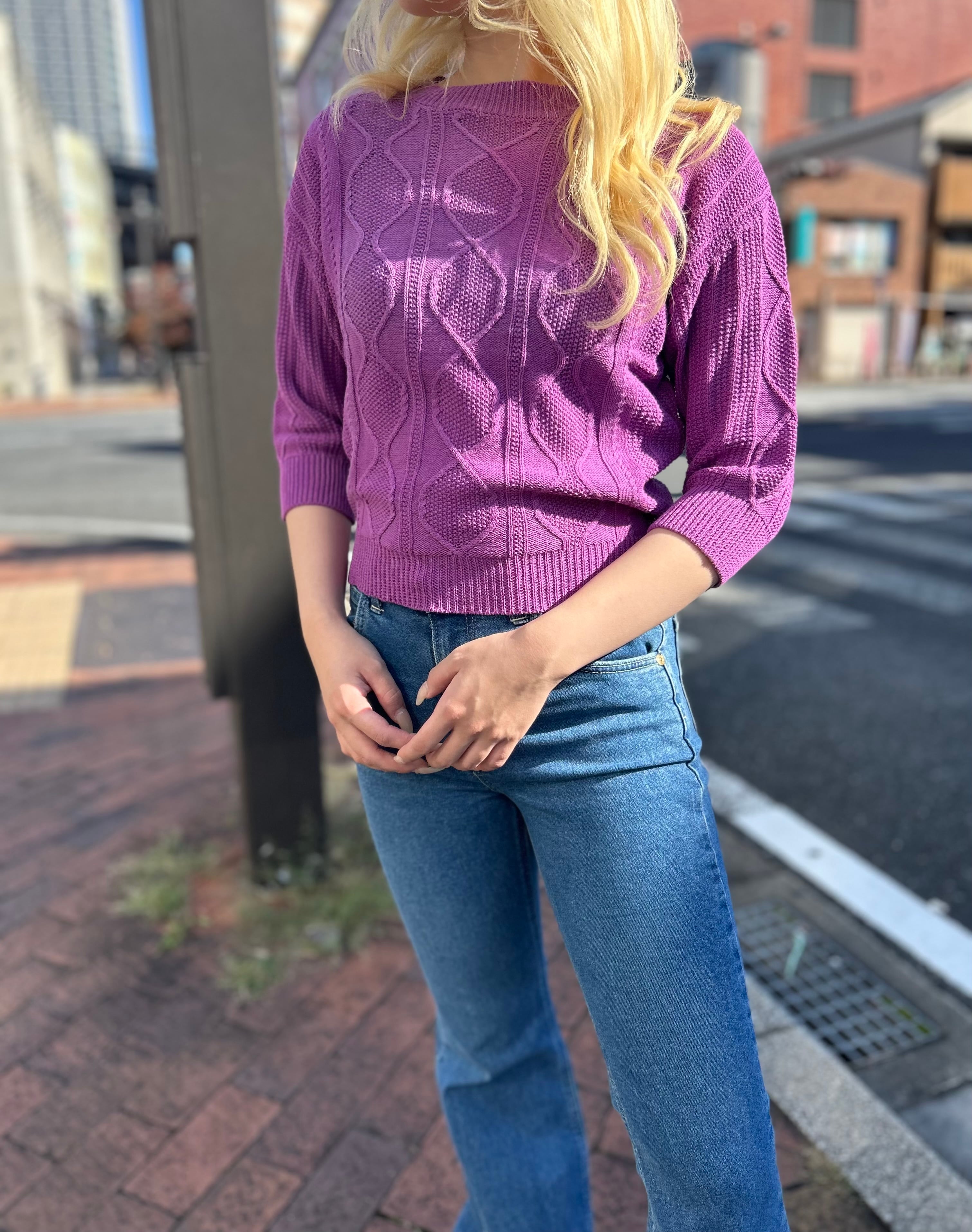 ケーブル編みにコンパクトフォルムが上品な雰囲気。