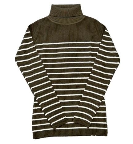 細かいピッチのボーダーはスッキリとした女性らしさを演出し、重ね着用のバリエーションとして持っていたいアイテム。
