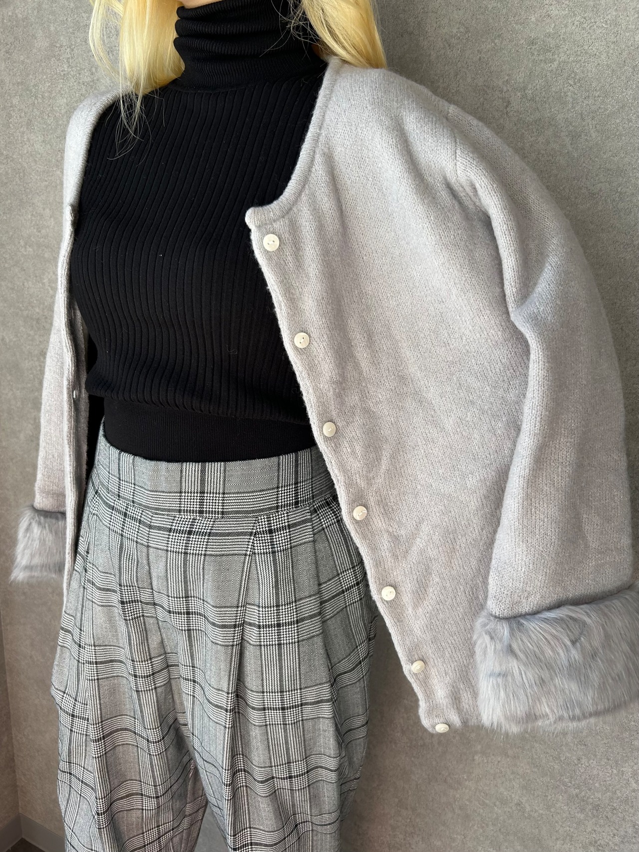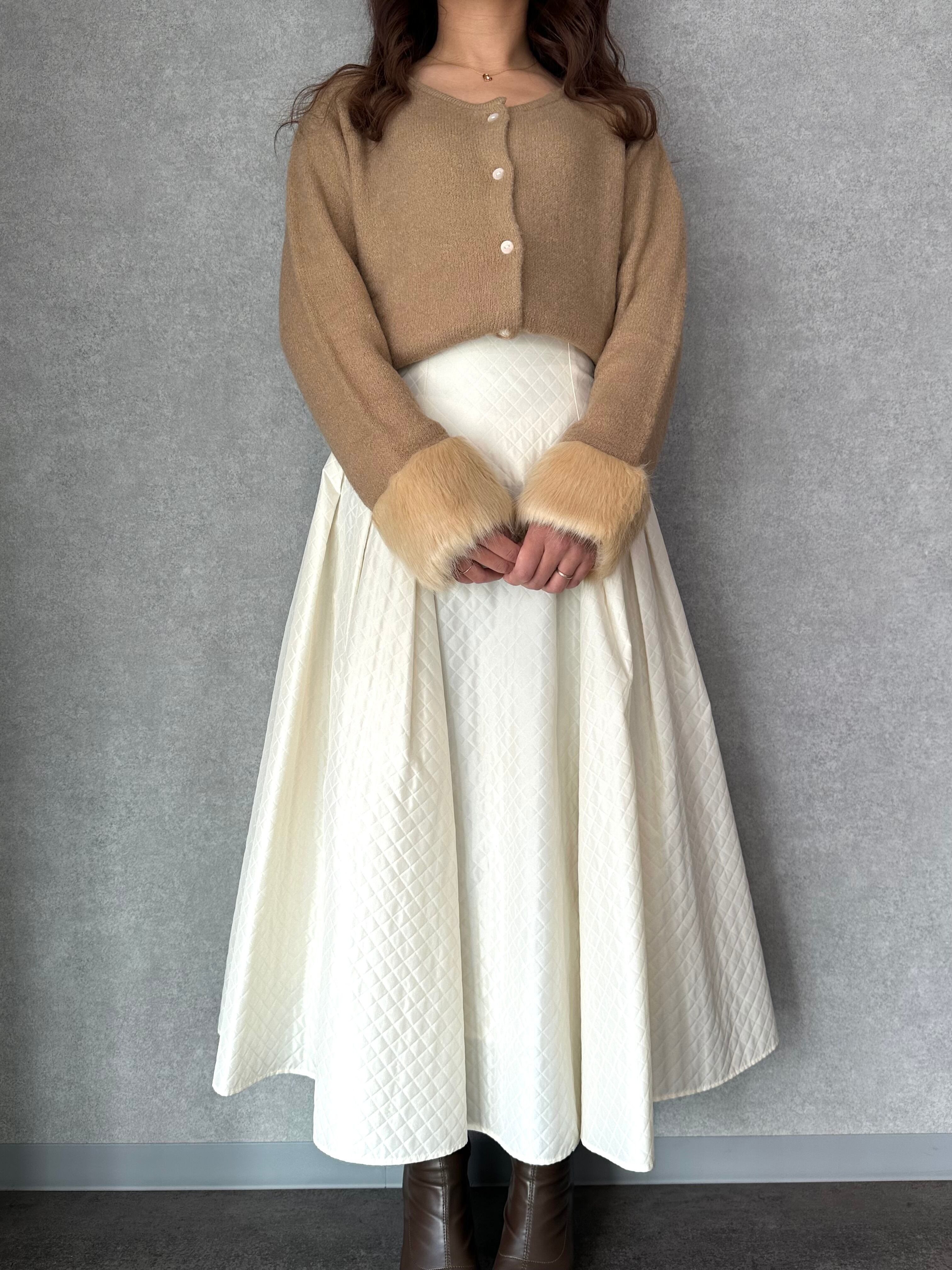 袖口にふわふわのファーをあしらったコーディネートの主役に。