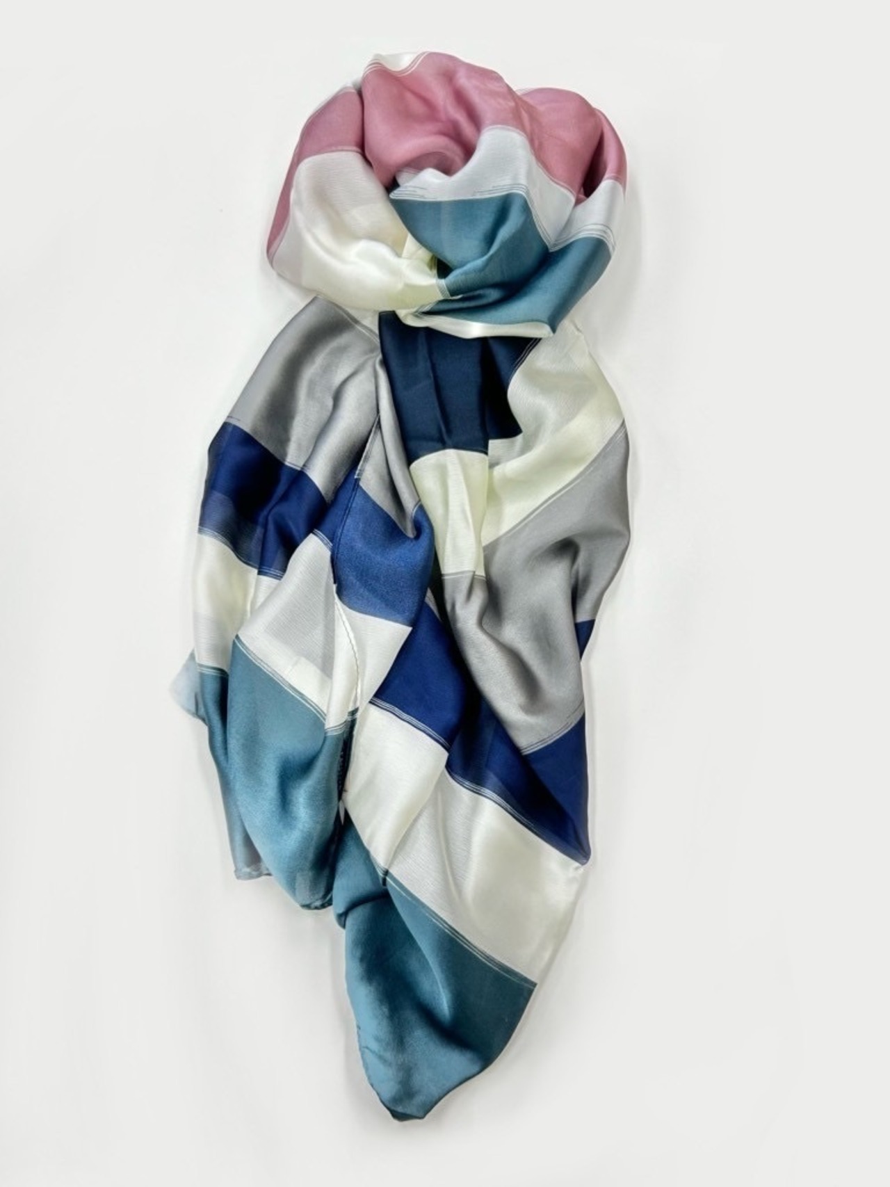 彩り豊かな柄は顔元を明るい印象に。