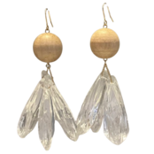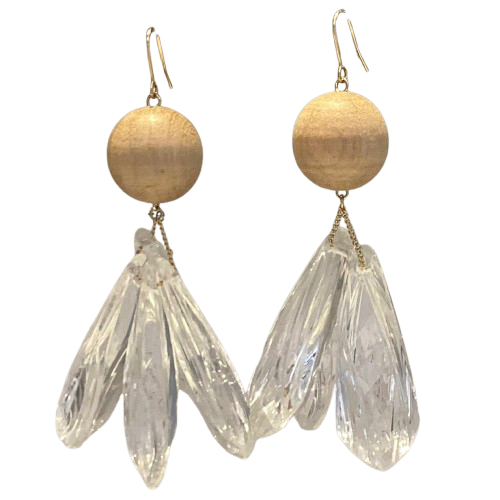大きめなアクリル素材クリスタルにウッドカボションが組み合わせられた、「大人っぽい」デザイン。